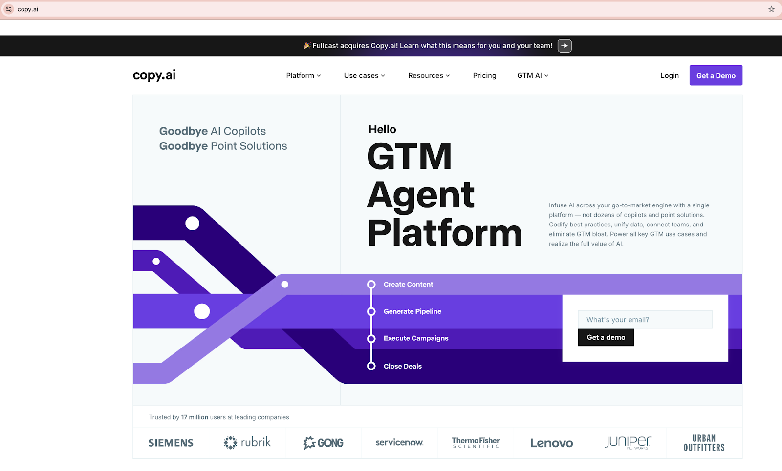 Copy.ai has created a clever brand domain that takes a literal approach to its services. Combining a searchable keyword like ‘copy’ with a .ai TLD instantly makes them searchable as an AI-powered copywriting service.