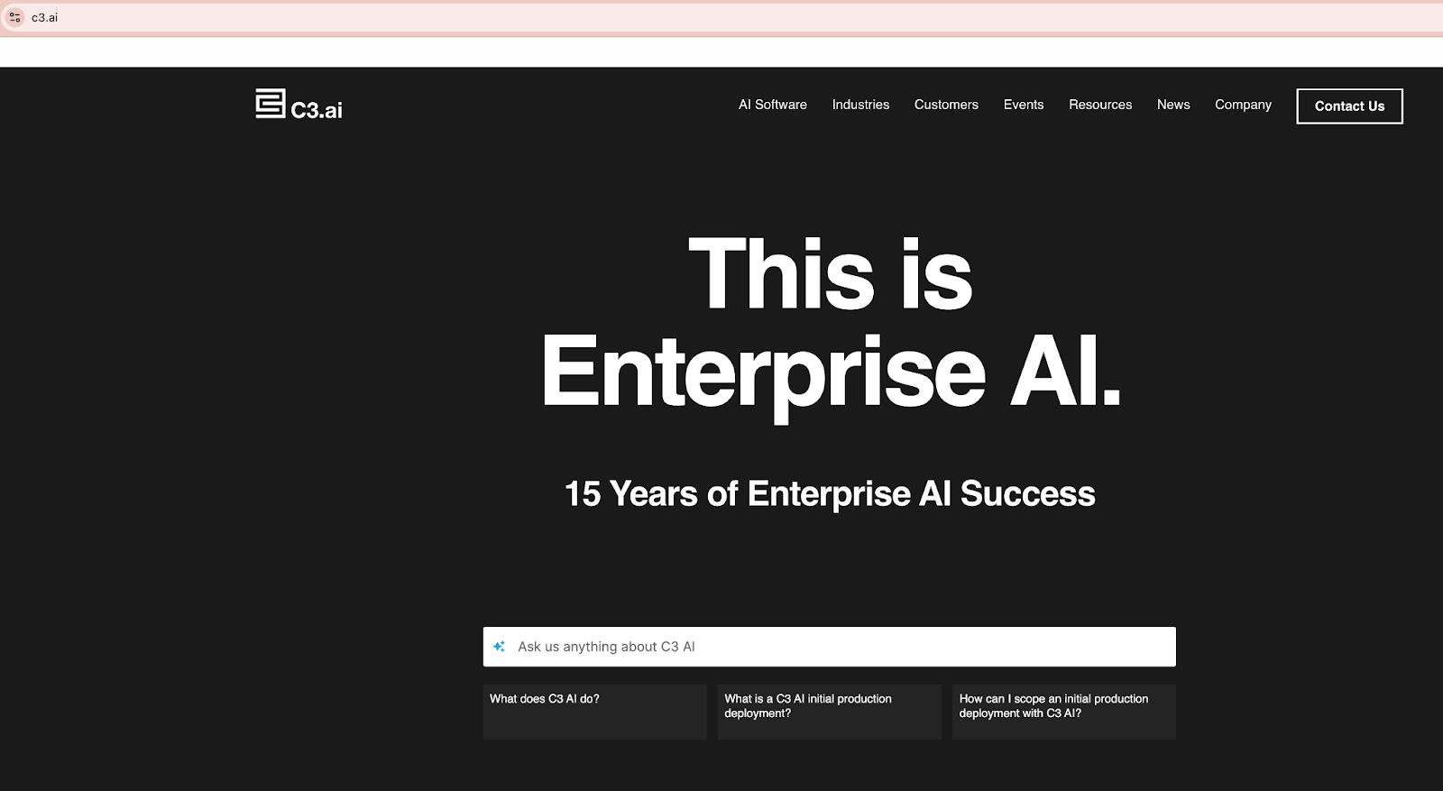 Taking a different approach to its competitors, coining keywords in their domain name, C3.ai immediately stands out.